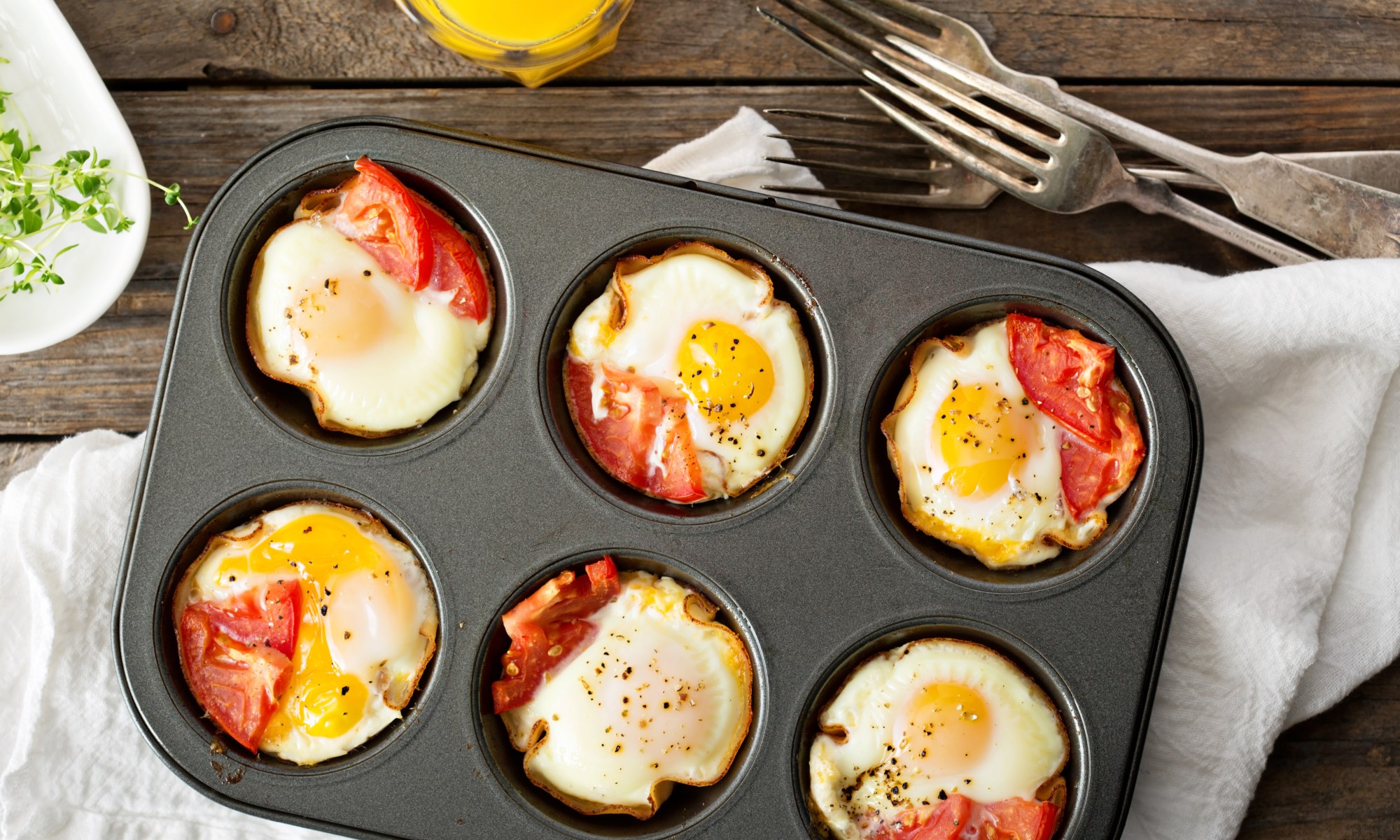 Elde ettiğiniz karışımı muffin kaplarına dökün ve ortasında boşluk açın. Yumurtaları boşluğa nazikçe kırın. Erimiş tereyağıyla muffinleri yağlayın. 20 dakika kadar pişirin. Servis etmeden önce 5 dakika soğumalarını bekleyin ve afiyetle yiyin.